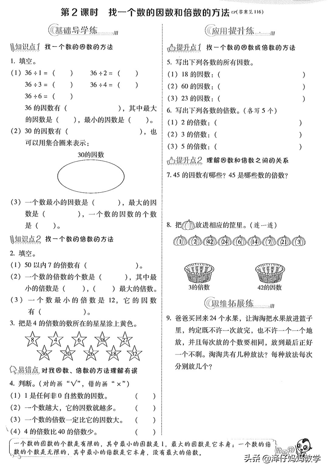 一个非零自然数既是它本身的倍数,又是它本身的因数。重点看下上图画红线的部分,然后做下面的题:
