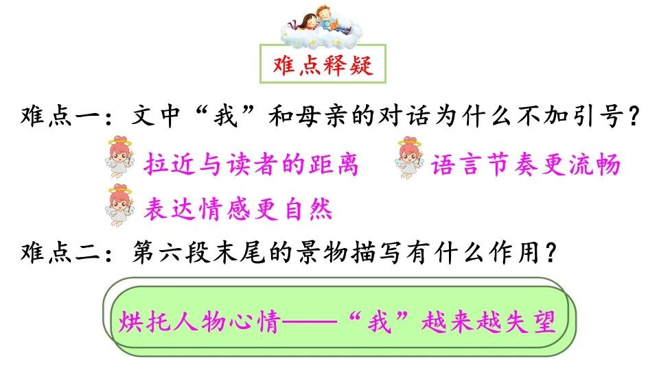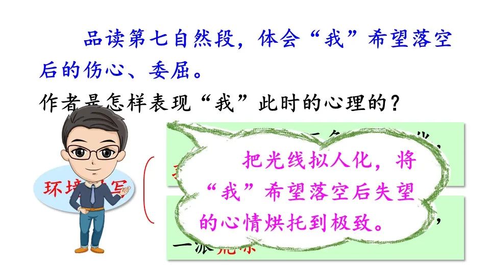 第三部分(7):叙写“我”在希望落空后倍感伤心以及母亲对“我”的安慰。