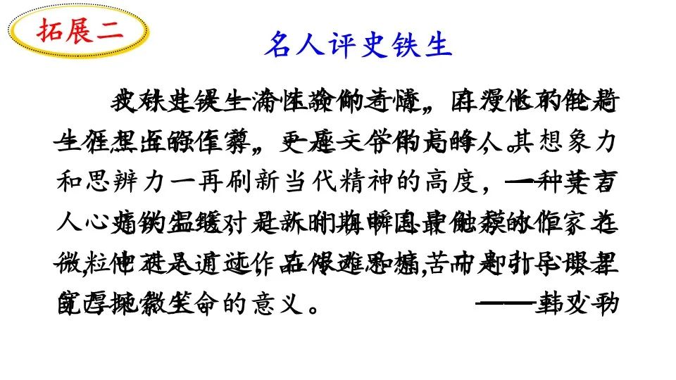 史铁生(1951一2010)中国作家、散文家。代表作品有长篇小说《务虚笔记》 ,散文、随笔集《病隙碎笔》《我与地坛》,中短篇小说集《我的遥远的清平湾》《命若琴弦》等。