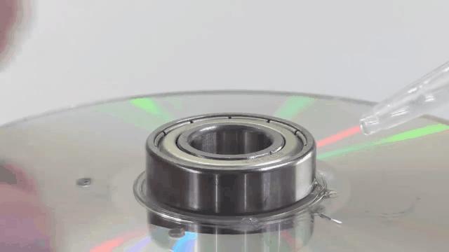 飞轮就用废旧的光盘制成,将6张光盘用胶水重合粘接在一起,粘接后的6张光盘重量不能超过100克。