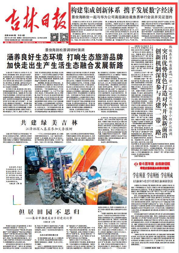 据《吉林日报》:4月16日,省委书记景俊海,省委副书记、省长韩俊一起与华为公司高级副总裁、中国区总裁鲁勇在长春举行会谈,并共同见证我省有关方面与华为公司签署《华为吉林区域总部项目协议》《吉林市人民政府与华为技术有限公司战略合作协议》。