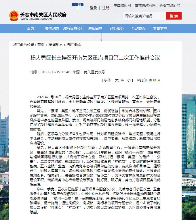 此前,南关区重点项目第二次工作推进会议上,也明确过包括华为吉林总部在内的项目进展情况和在建设推进过程中遇见的难题,并提出解决办法和完成时限。