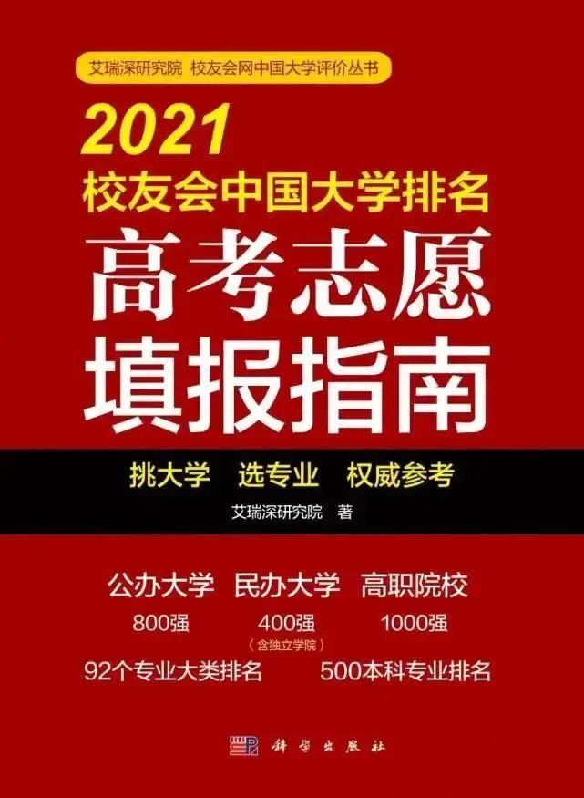 2021年3月,全国第三方大学评价研究机构艾瑞深校友会网(cuaa.net)正式发布《2021校友会中国大学排名—高考志愿填报指南》,报告发布最新校友会2021中国大学排名、2021中国华东地区大学排名和2021江西省大学排名等,报告将由科学出版社公开出版发行。