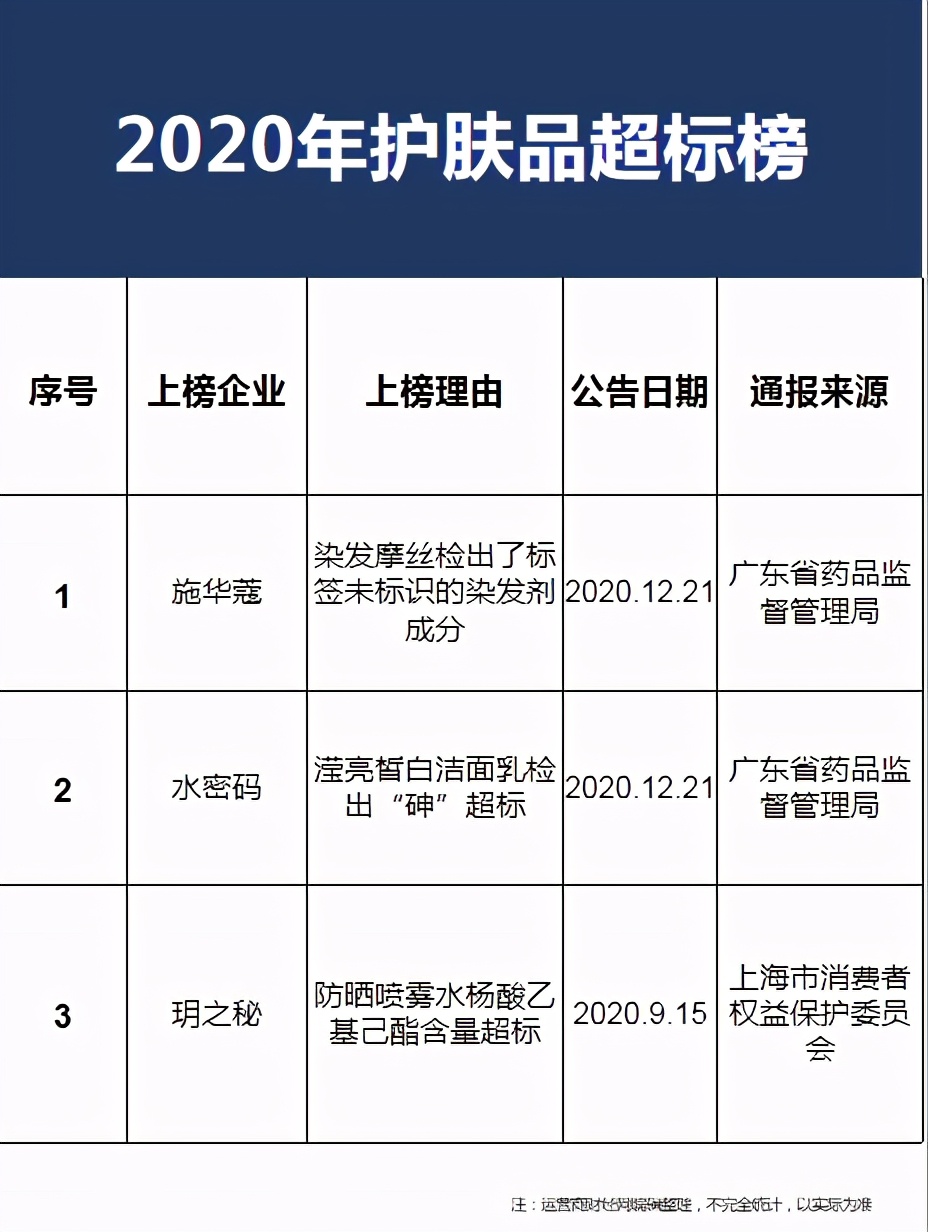 近日,临近一年一度的315,运营商财经总结整理了2020年护肤品牌中出现超标情况的企业,并列出榜单,供公众参考。其中施华蔻名列其中。
