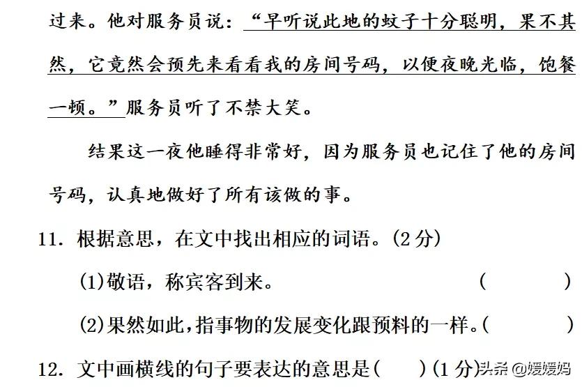 四、(一)11.(1)光临 (2)果不其然 12.C