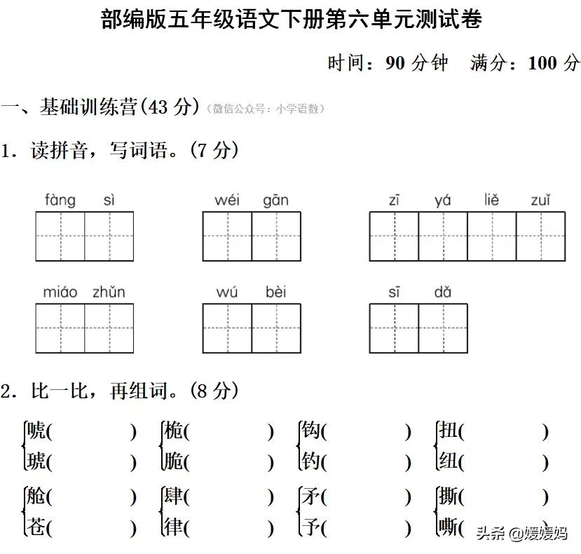 三、1.予 给予 钓 钓鱼 夫 丈夫
