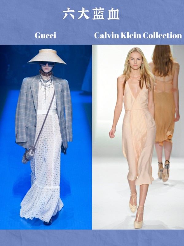 六大蓝血包含: Chanel(香奈儿)、Dior(迪奥)、Louis vuitton(路易威登)、Gucci(古驰)、Prada(普拉达)、Calvin Klein Collection(CK成衣线)。其中CK的高端成衣线因为缩减开支已经被砍掉了,因此现在其实只剩下五大蓝血。