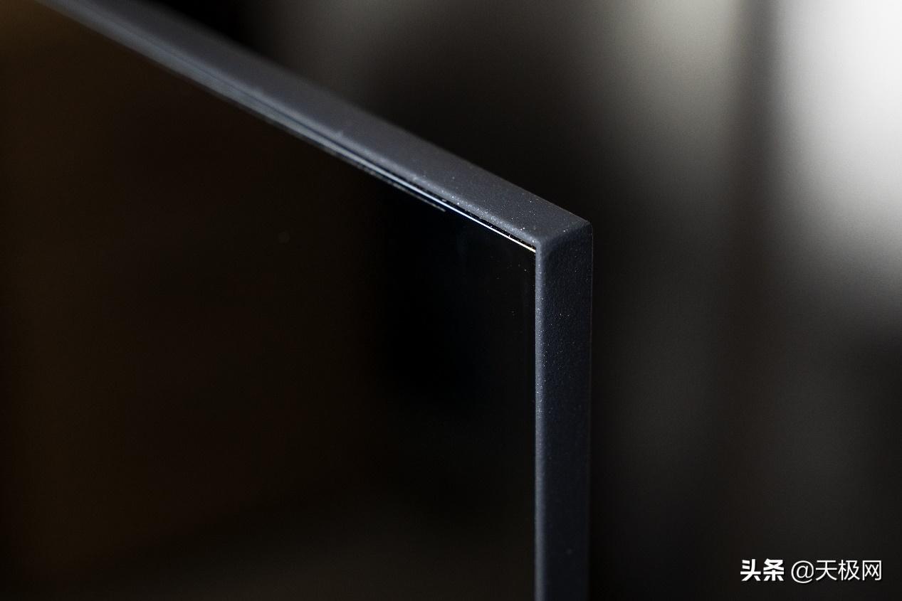 在电视机面板下方的装饰条引入了星河入梦的设计理念,灵感来自于“醉后不知天在水,满船清梦压星河”。通过高端消费电子产品应用的星钻免喷涂工艺,在装饰条中加入银色金属颗粒,让装饰条在灯光照耀下星光粼粼,如星河一般梦幻美好。在灯光下能闪闪发光,听闻戴森也是使用的这种工艺。更显时尚年轻。