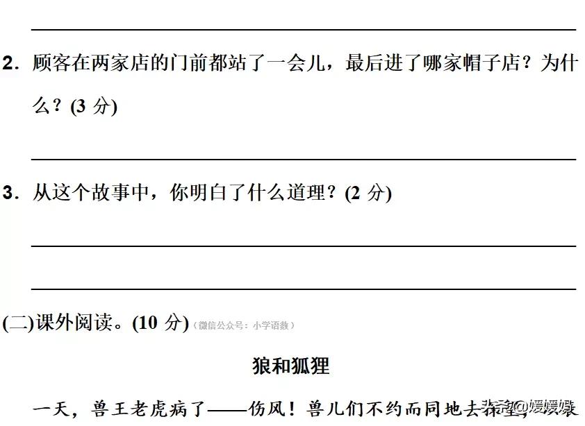 2.新帽子店。因为新帽子店里的帽子样式多而且舒服。【公众号:小学语数】