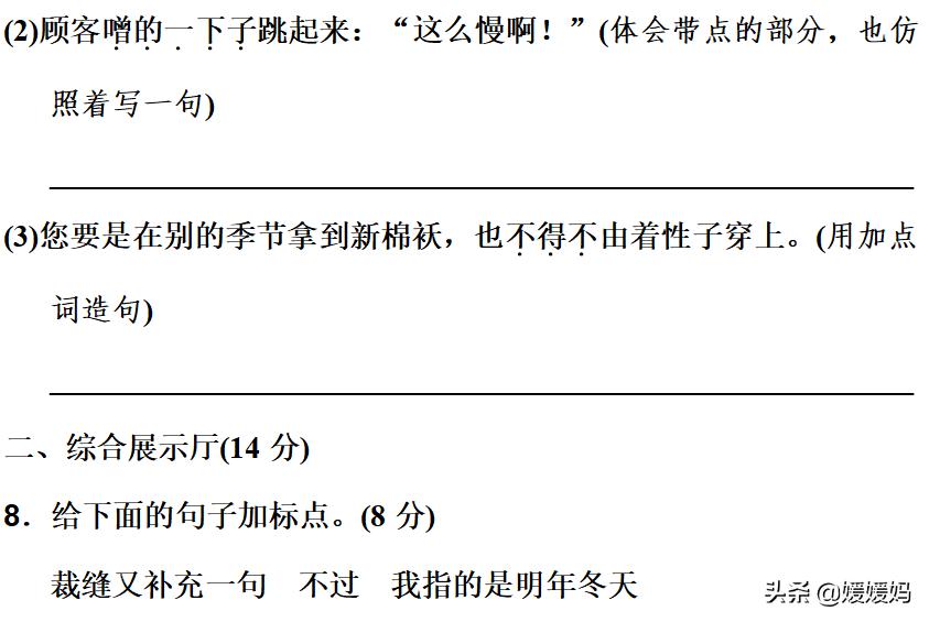 (2)裁缝说,他和别的裁缝不一样,他是个性子最慢的裁缝。