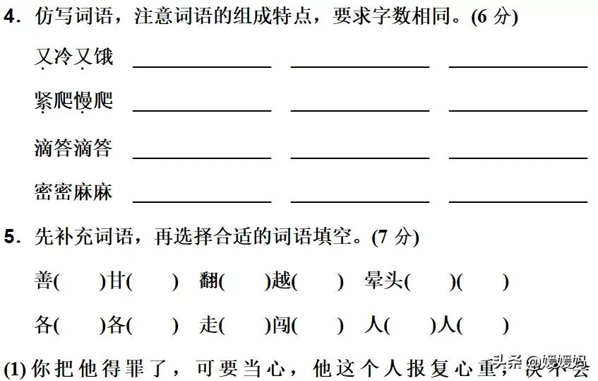 6.(1)耐心 (2)细心 (3)厉害 (4)严厉