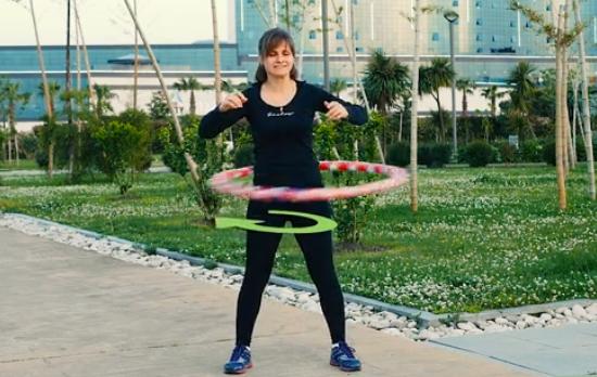 9、持续的旋转呼啦圈,让自己感觉像一个杆子一样有到一个环状围绕自己旋转。如果呼啦圈不慎掉落,可以重新捡起迅速转起来,这样不影响运动时间,可以保持脂肪继续燃烧。