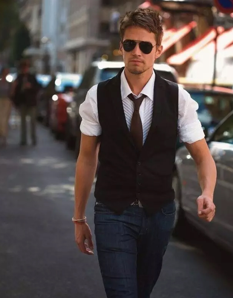 或是马甲配衬衣,还要套个小西服,原本一本正经的服装单品却被Tony老师穿出了乡土气息。
