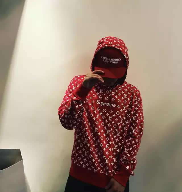 譬如,穿个Supreme x LV联名款夹克搭配同联名款小背包,“一条龙”装备浑身都散发着金钱的味道,生怕别人不知道自己多有钱。