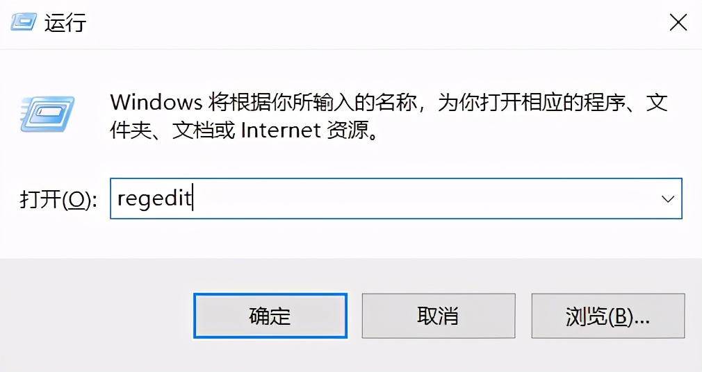 首先在菜单栏中找到运行对话框或者按下快捷键“win+R”,在打开输入框内输入“regedit”后点击确定。