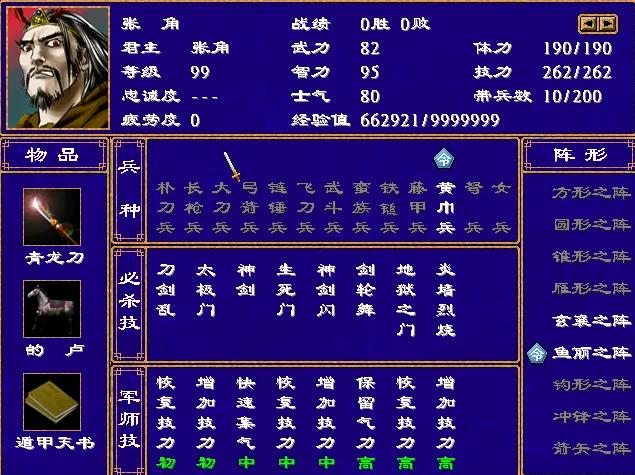 说一哈武器和坐骑,最高大上的三个武器,青龙偃月刀,丈八蛇矛和方天画戟,加30武力。坐骑最好的是的卢和爪黄飞电,网上有说游戏里有倚天剑和赤兔马,不过我玩了几遍也没搜索到,有待考察。