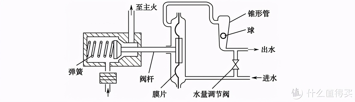 水气联动装置的作用是保证在水压足够,且被引进热交换器流动时燃气控制阀门才能打开;而当水流停止或压力不足时自动切断燃气的供气通路,防止因缺水而烧坏设备,即通常所说的“水到,气到”。