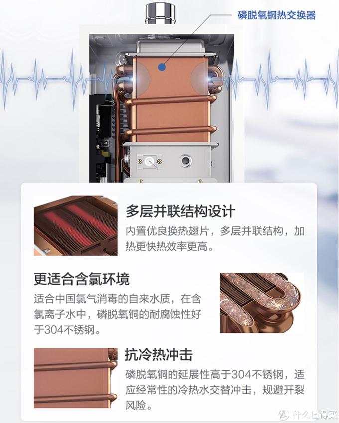 热交换器被比喻为燃气热水器的“心脏”,是热水器加热性能的核心。能率以磷脱氧技术,精心打造优良的磷脱氧铜热交换器,铜纯度可达99.96%。