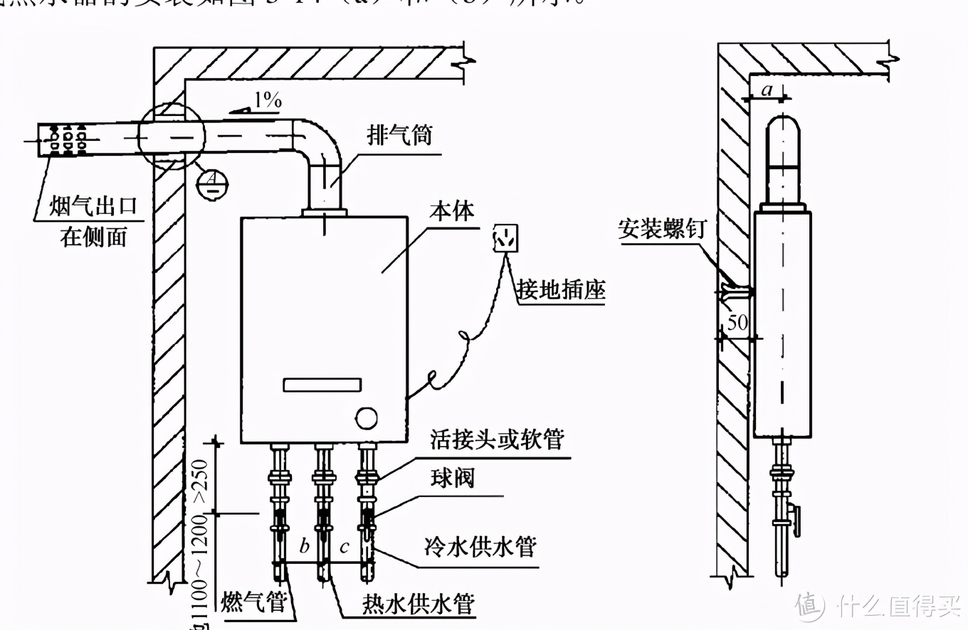 ④平衡式热水器工作时所需的空气和排放的废烟气均通过特殊的烟道形成平衡对流,排放于室外。