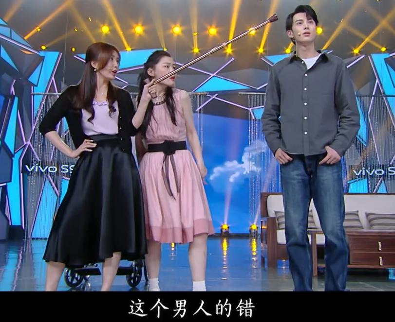 但是随着舞台的BGM一换,节目也是重新解释了《再见一帘幽梦》的爱情悲剧了,或者说这部电视剧的爱情悲剧的源头就在于楚濂,可以说楚濂是一个渣男,才破坏了绿萍紫菱的姐妹感情。因此在舞台上,绿萍和紫菱也是站在了共同阵线上声讨楚濂:都是这个男人的错。