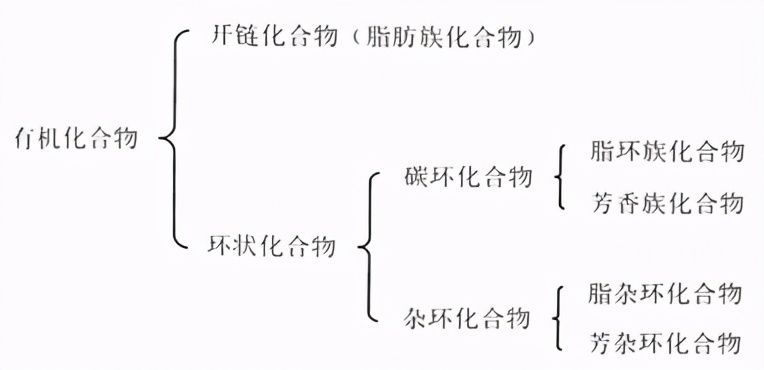 1.开链化合物(又称脂肪族化合物):碳原子互相连接成链状的化合物。