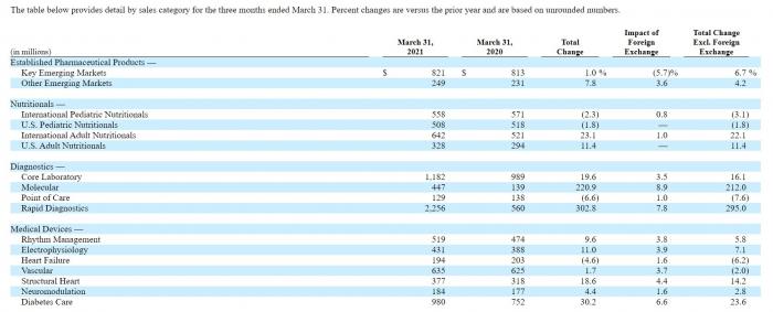 今年一季度,雅培国际儿科营养销售额(不包括外汇影响)同比下降3.1%,美国儿科营养销售额下降了1.8%。报告指出,雅培儿科营养销售额下降主要受到去年同期基数较高的负面影响,当时消费者因疫情而提前增加了购买量。