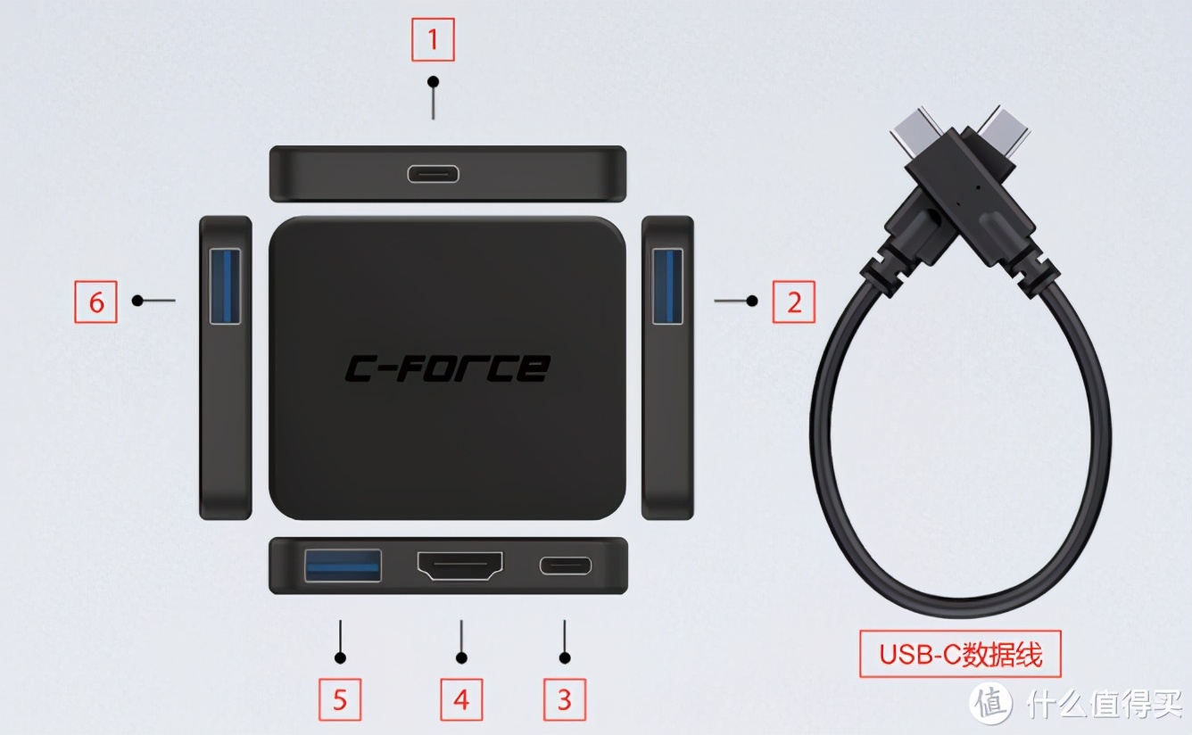 我近期搞了一个Cforce出品的Type-C拓展坞,它有3个USB3.1接口、1个HDMI接口、一个Type-C PD供电接口和一个Type-C输入接口