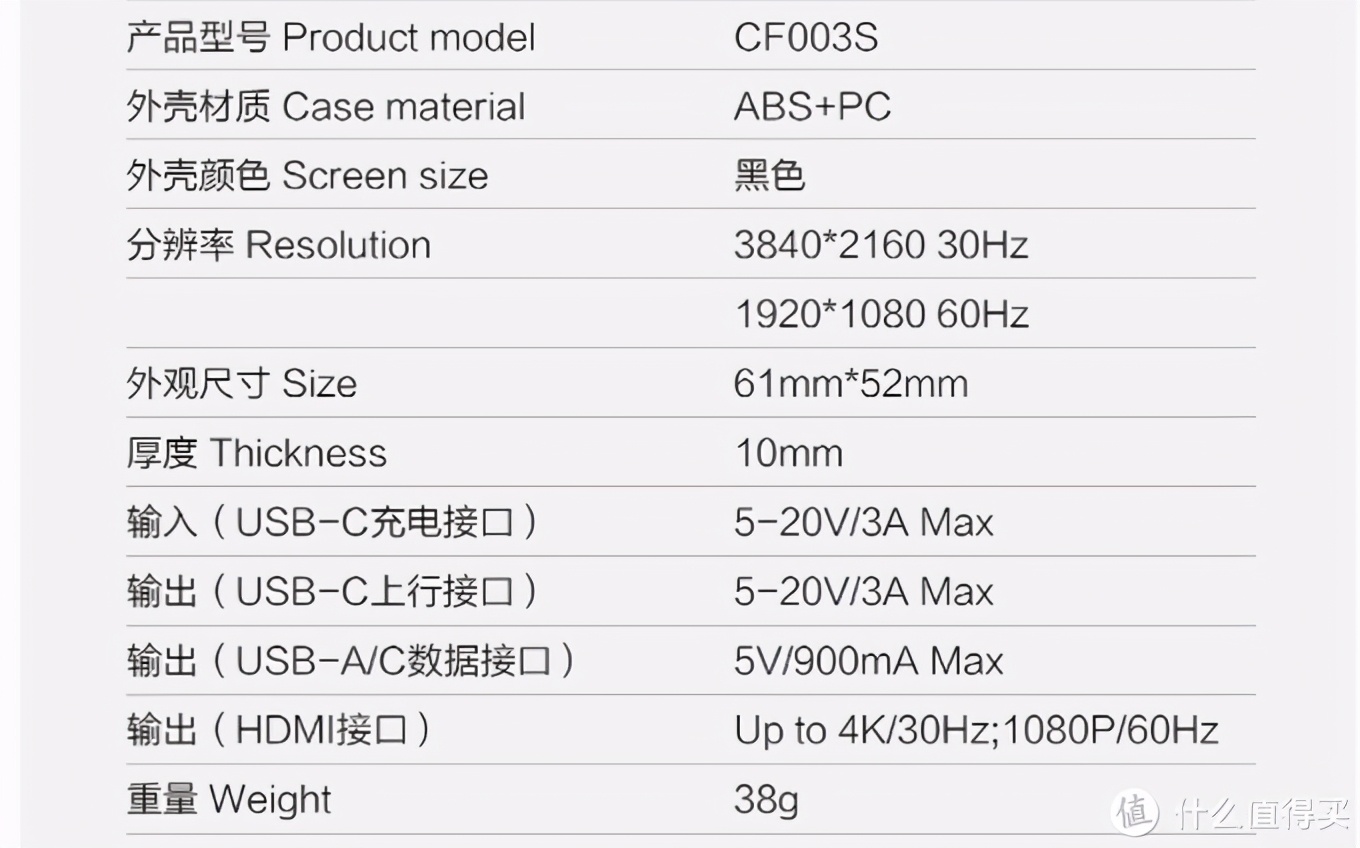 它的HDMI 接口支持4k@30Hz或1080P@60Hz,它的Type-C PD输入支持最高60W的输入。