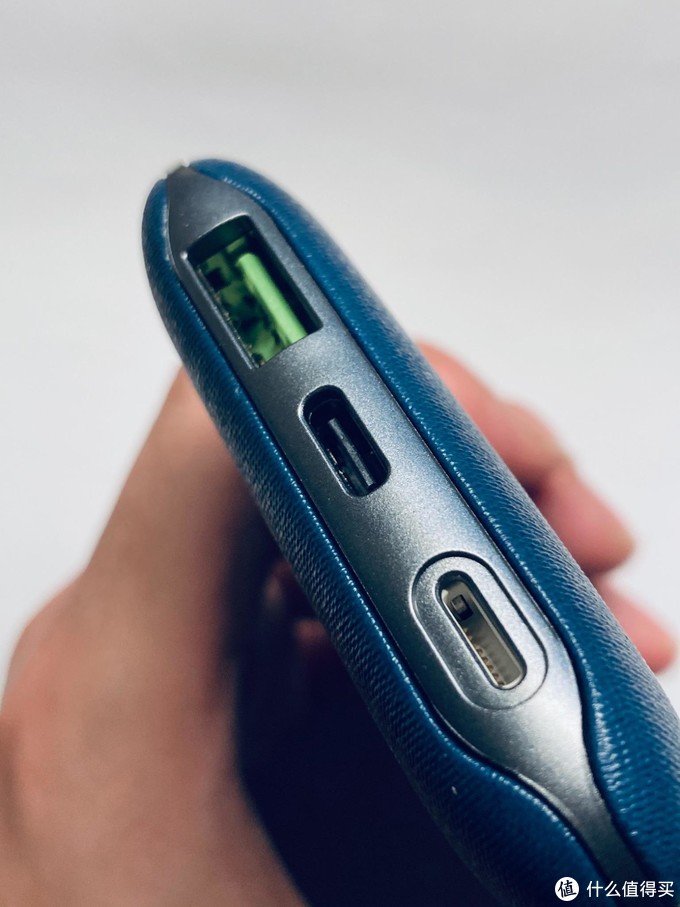 这充电宝最吸引我的是两个点,一个是它用细腻的PU皮和编织机理营造出了类布艺手感,亲测手感不错,温润舒服