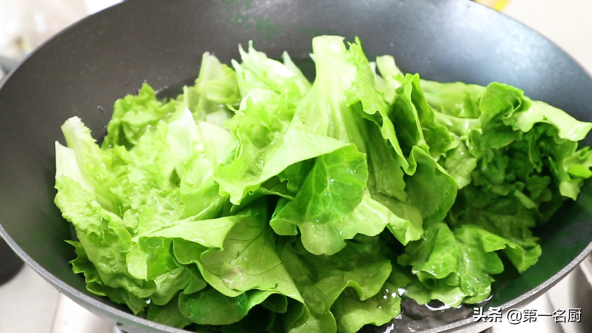 5.锅中添入适量清水,加入一勺食盐增加底味,再加入少许植物油,保持生菜碧绿的颜色。