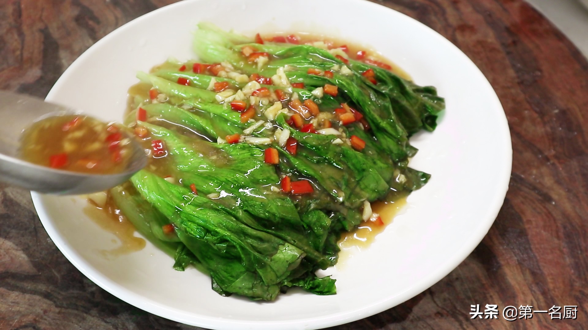 11.最后把熬好的汤汁,均匀的浇在生菜叶上面,就可以上桌食用了。