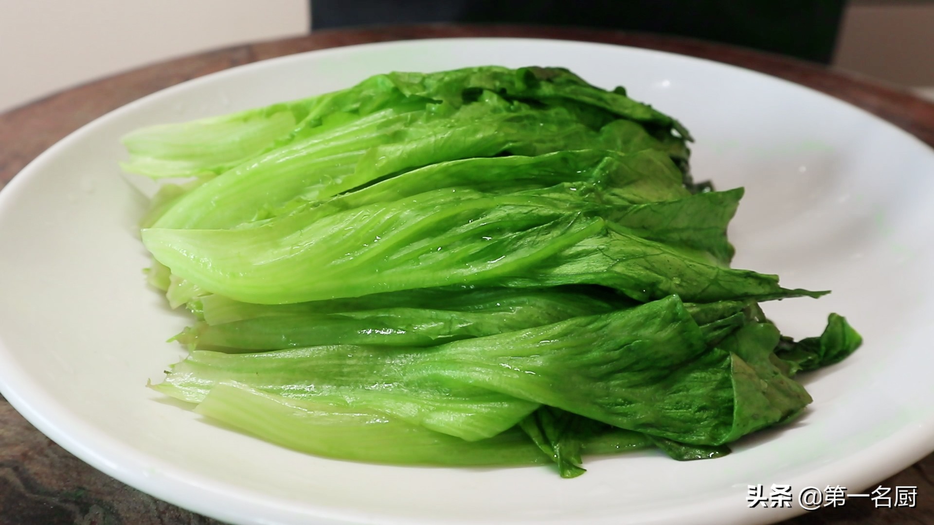 7.再均匀的摆入盘中,生菜叶不易焯水过久,否则会失去脆嫩的口感。