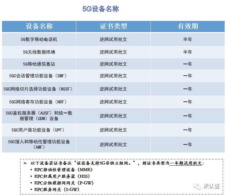 5G设备名称