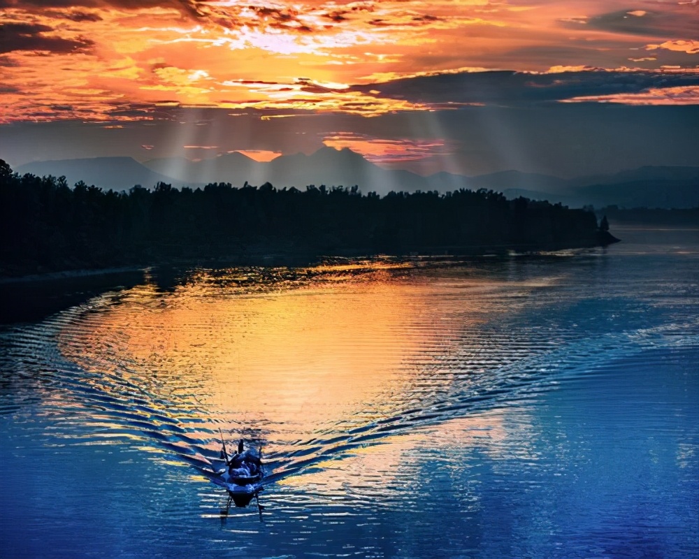当然,或许此时天上晚霞遄飞,半个天空灿烂如火,倒映在碧绿的江水上,也能呈现“半江瑟瑟半江红”的美艳画面。