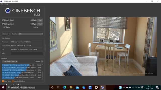 通过R23测试来看,其多核成绩可达4863pts,单核成绩可以达到1377pts。