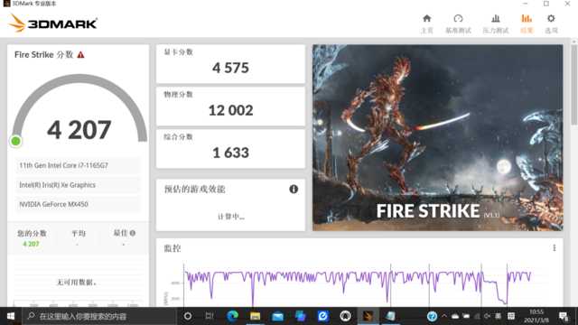 星14高性能轻薄本搭载了全新NVIDIAGeForceMX450独立显卡,这是目前轻薄本中的顶配独显,可完美驾驭主流游戏和设计工作,娱乐创意两不误。通过3DMark的FireStrike模式来看,综合得分4207分,其显卡单项得分4575分。