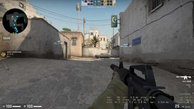游戏方面,我们选择了《CS:GO》,中画质,游戏帧数可以稳定在80~100帧,操作起来流畅无卡顿,整体游戏体验不错。