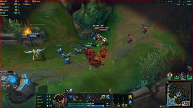 在《英雄联盟》中,极高画质,5V5战斗,团战下帧数可以保持在110帧以上的水平。