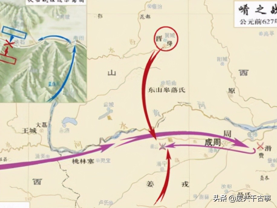 公元前627年四月,秦军进入埋伏圈,崤之战打响,秦军全军覆没,孟明视、西乞术、白乙丙等三帅被俘。虽然三人最后还是借“秦晋之好”被释放回国,但秦国这次的瘪子可吃大了!