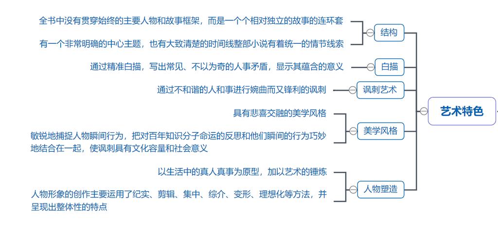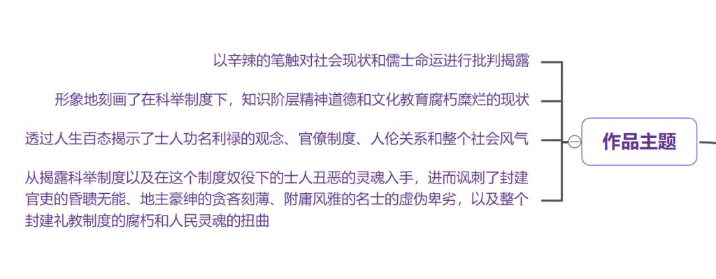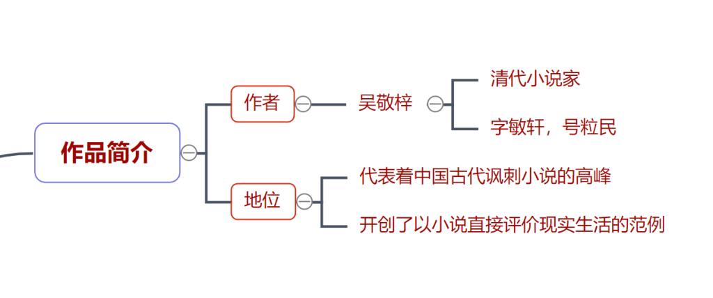 儒林外史的思维导图整理我们主要可以从五个方面进行整理,分别是作品简介、创作背景、作品主题、意义以及艺术特色这几个方面着手。