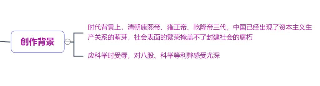 《儒林外史》的创作背景是以清朝康熙、雍正以及乾隆皇帝的时期为主,当时中国社会已经有资本主义关系的萌芽,虽然当时的社会看似欣欣向荣,但是却掩盖不了当时封建社会的腐朽与黑暗,正值作者科举考试受辱,对八股文以及科举制度的利弊感受颇深,最终创作出了这本旷世奇书。