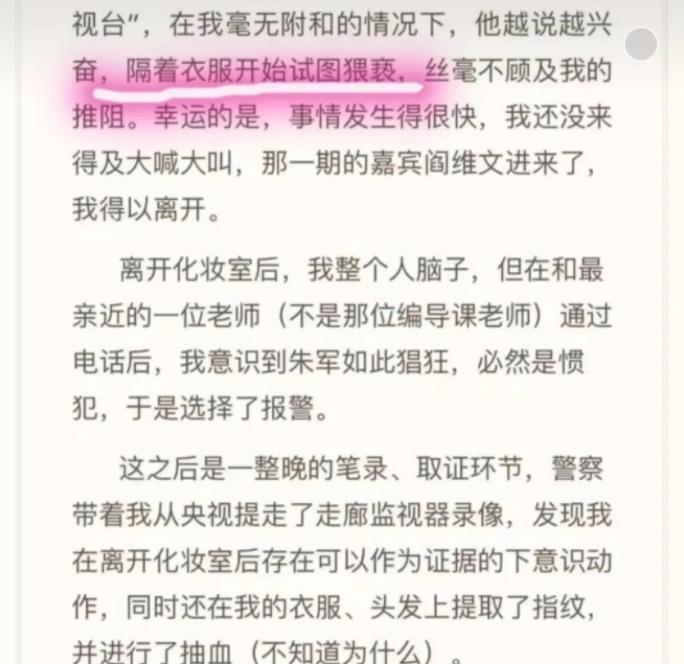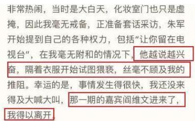 2018年8月网曝朱军曾在2014年6月猥亵一名实习生—弦子