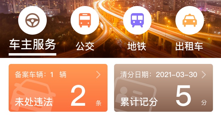 驾驶证的清分日期及累计记分数,点击后进入驾驶证服务。