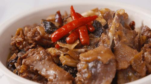 汤汁收浓,梅酒辣味鸭就做好啦!