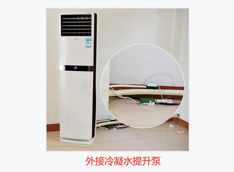 比如按照的柜机是最容易出现这样的问题,因为每台柜机的排水口都不是固定的,而家里的排水口高度却是固定的,所以如果柜机的排水口平行或略高于预留孔洞,应该进行垫高空调,保持排水坡度。