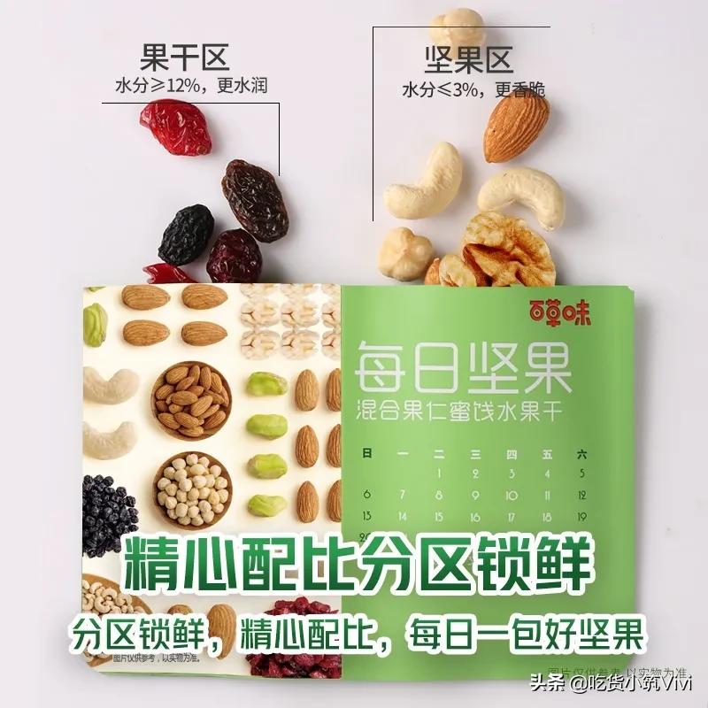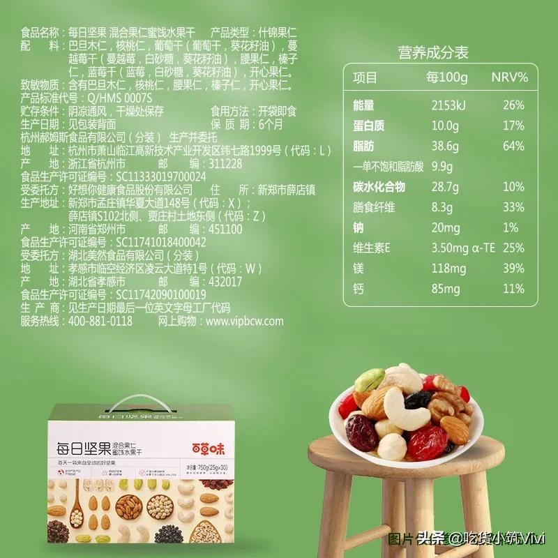 我个人就会比较喜欢百草味的每日坚果,比起其他品牌,它有3点最吸引我: