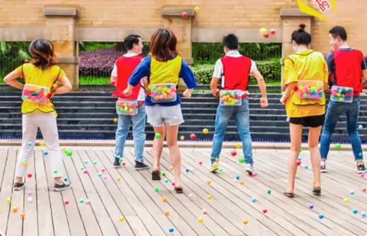 抖球游戏又称“公鸡下蛋”,就是在腰上拴一个有洞的格子,里面装满了球,玩家通过各种肢体抖动把球抖出来。