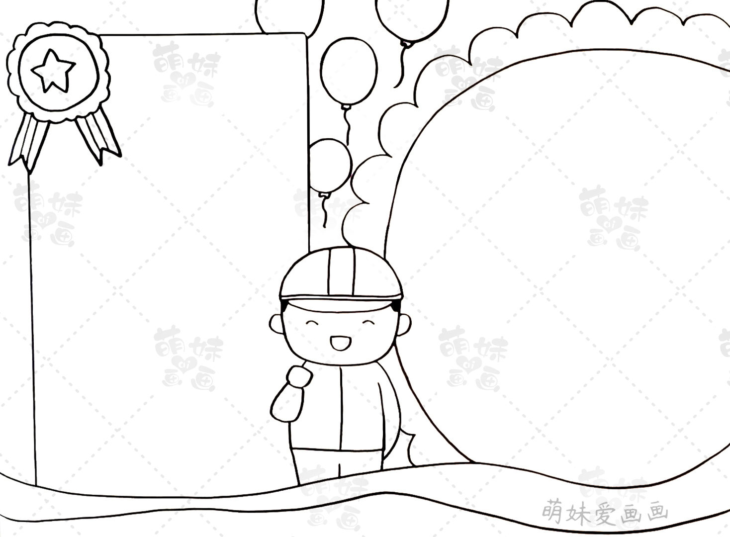 我们以一位工人叔叔的形象作为手抄报的主形象,用向日葵和简单的长方形来作为手抄报的边框,用气球和勋章来装饰我们的手抄报,这样的组合简单又好看。