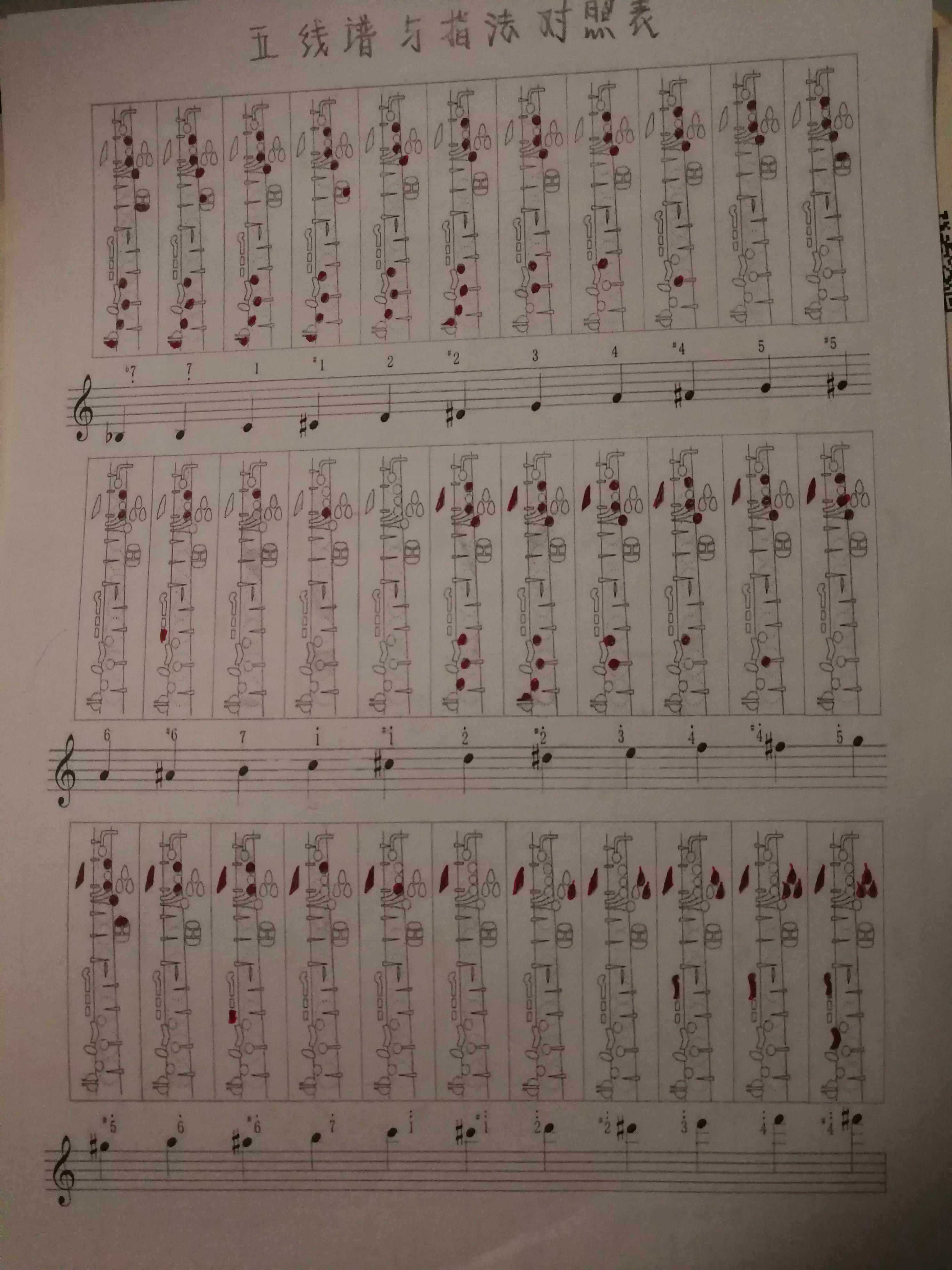 有不明白的朋友可以去看一下这期的视频,讲了一部分指法对照。没有讲到的大家可以根据上面的图表进行对照学习,我们以后还是以识读五线谱曲谱学习为主。
