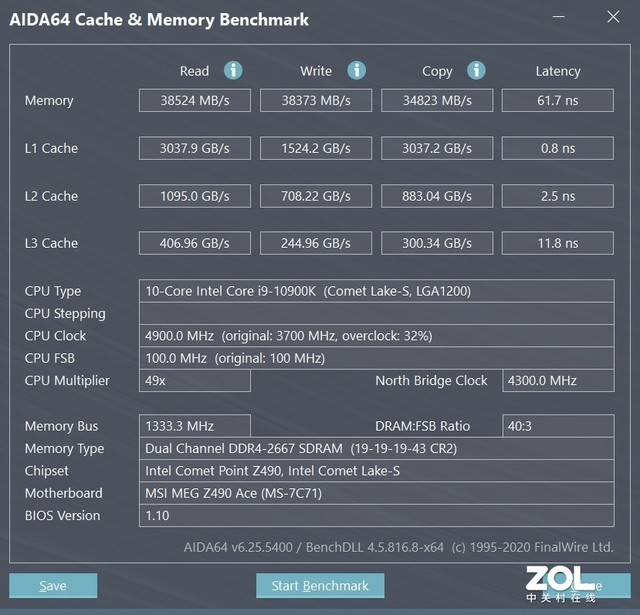 从测试的结果来看的,内存频率的提升,对于性能的影响还是非常大,通过XMP将频率自动同步至3600MHz之后,KLEVV BOLT XR DDR4 3600MHz 8GB*2内存的读取速度为49623MB/s,写入速度为50611MB/s,复制速度43030MB/s,延迟为53.1ns,同比2666MHz在性能上得到了大幅度的提升。